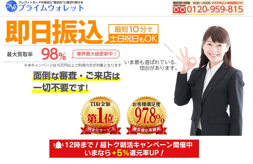 プライムウォレットは現金化の相場価格や注意する点をしっかり把握した玄人向けと判断しました。